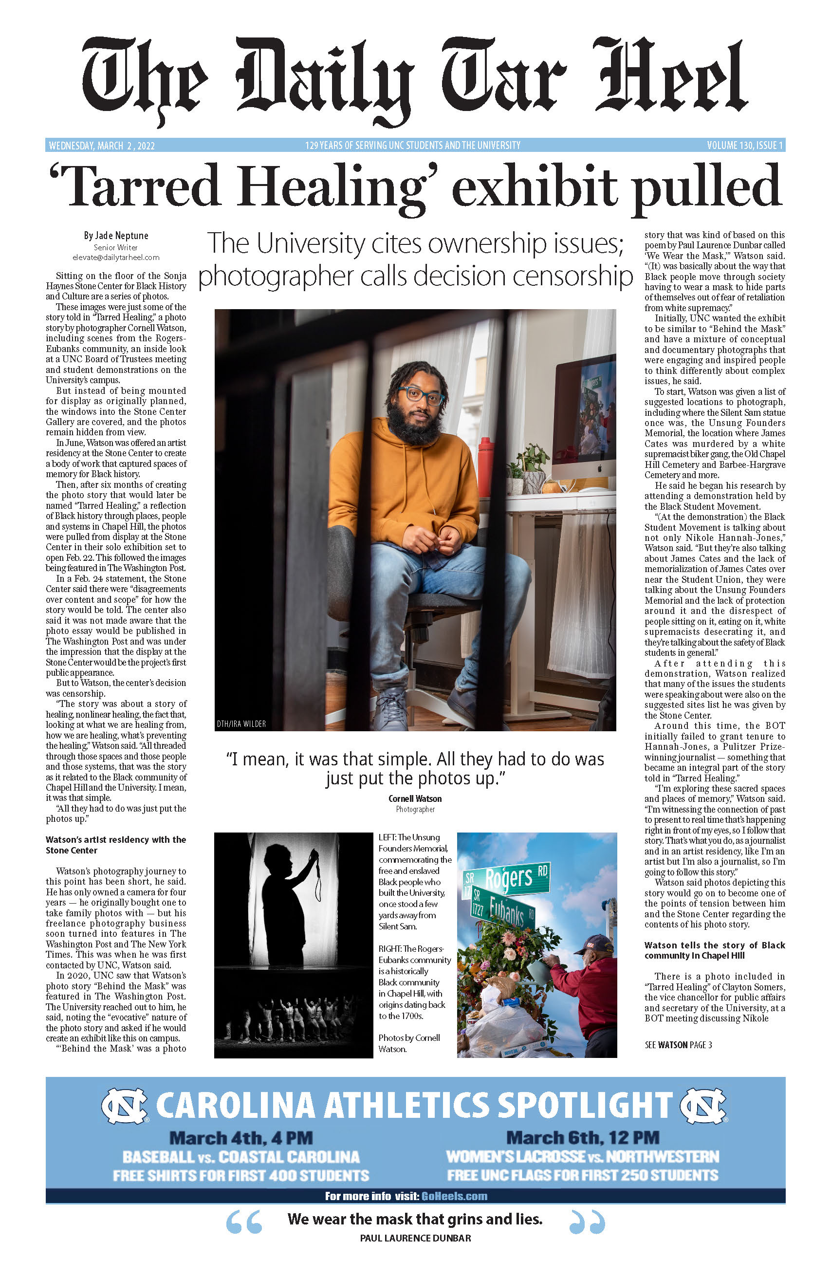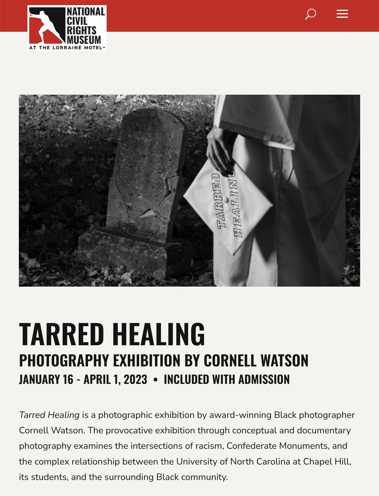 “Tarred Healing” is the name of a photo series I made during an artist fellowship at UNC-Chapel in 2021. The series was basically an expansion of my series “Behind the Mask”, but centered on stories of the Black community of UNC and Chapel Hill. There was supposed to have been an exhibition of the work at the beginning of the year, but what had happened was the University started tripping.